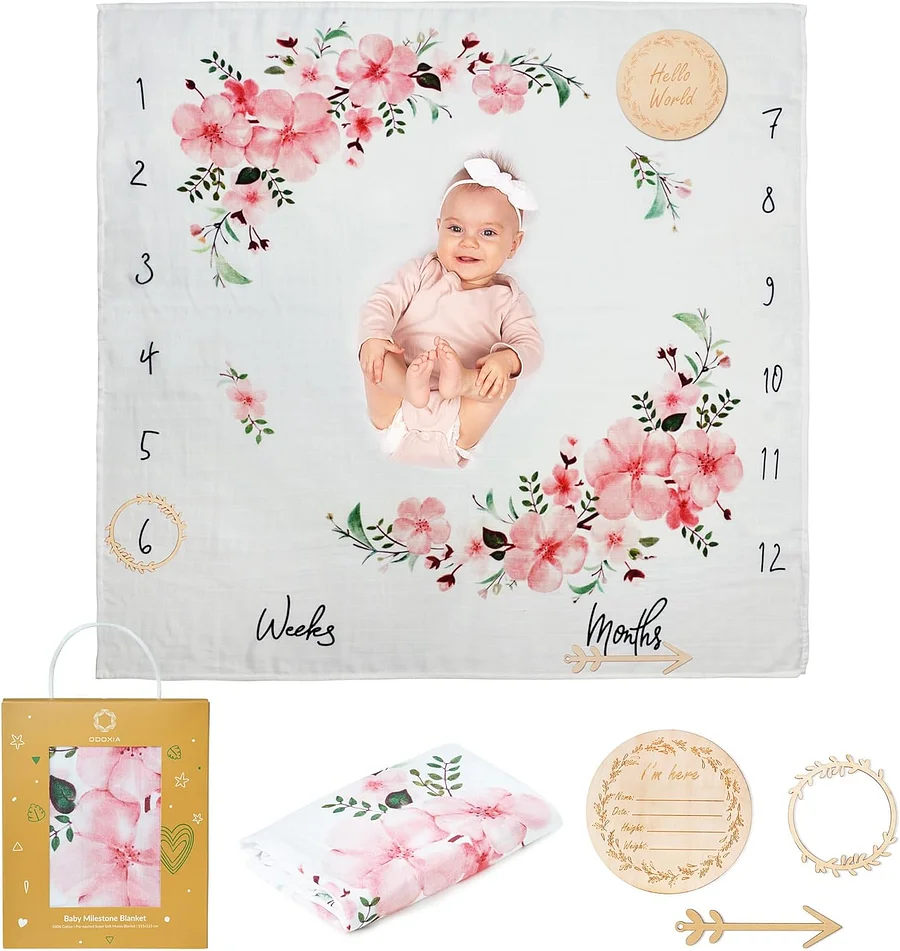 - CAPTURE THE MOMENT - Wouldn’t you love to create unique memories of your baby’s growth during their first year? Our baby milestone muslin blanket is the best way to capture all these beautiful milestones in your baby’s life and share pictures with your friends and family. Watch your baby grow!