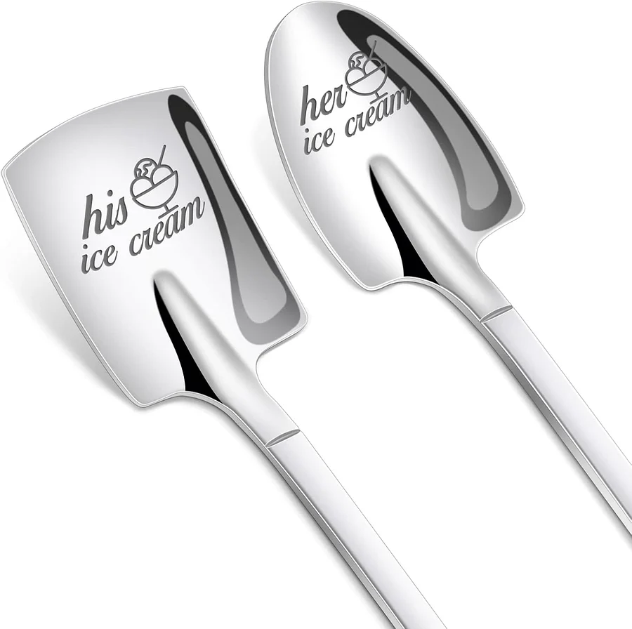 - Gifts for Him Her: Unique gift ideas for lovers, couples, friends, wife, husband, parents, grandparents, etc. His and hers engraved ice cream spoons can be ice cream sundae gift sets and unique birthday gifts for him and her and stainless steel gifts for Anniversary, Valentine's Day, Wedding, Christmas, Thanksgiving, etc.